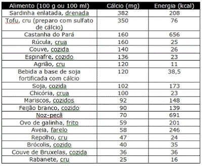 Para quem não tolera bem o leite, segue uma tabelinha de alguns alimentos não lácteos ricos em cálcio!